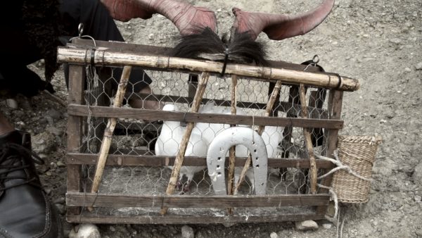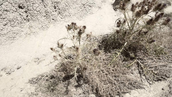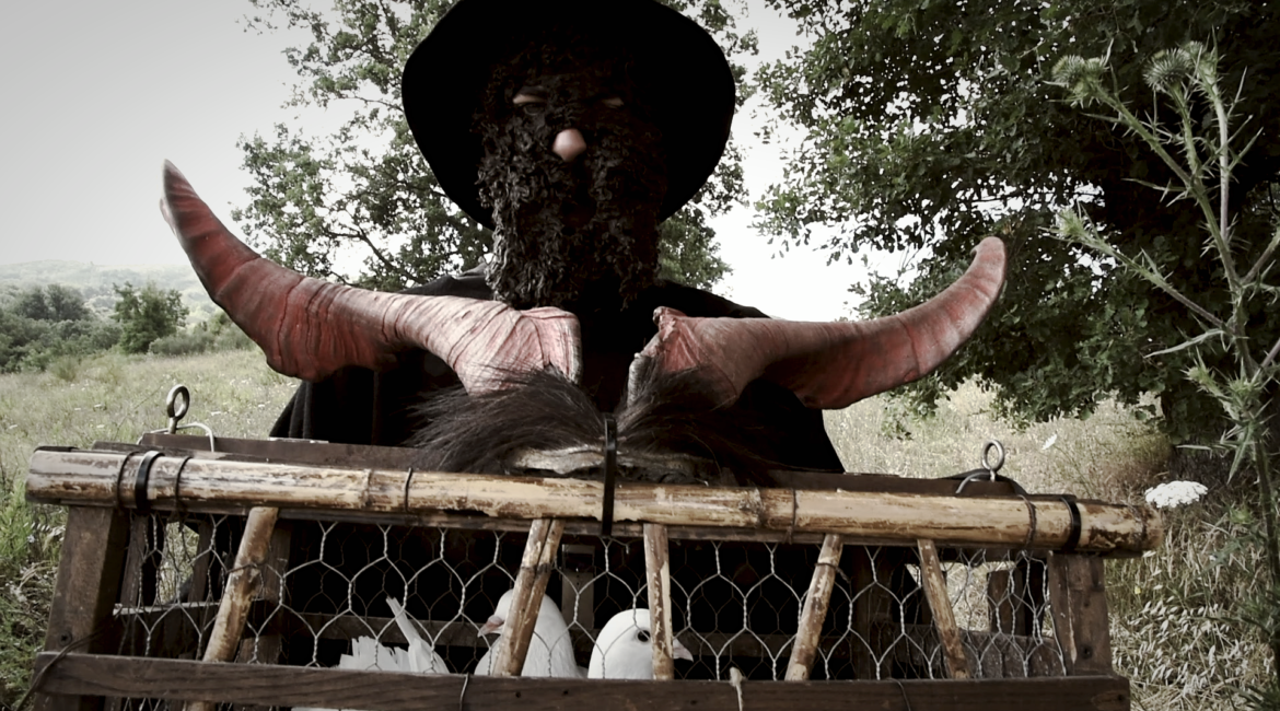 “Person Lucky Charm di Maria Grazia Carriero, riavvolgendo il nastro di un passato legato alle tradizioni e ai rituali popolari, rielabora la figura del “Portafortuna”, maschera tradizionale del carnevale di Teana (PZ) che qui diventa il simbolo, solitario ed errabondo, di una memoria identitaria che si riflette ancora oggi, in forme e dinamiche socio-culturali ovviamente diverse. Immerso in una Natura ambigua, ora rigogliosa ora arida, il Portafortuna mostra messaggi scritti su piccoli foglietti che poi lasciando cadere come offerta alla terra e suo simbolico nutrimento”.